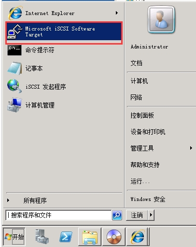 點(diǎn)擊開(kāi)始,找到Microsoft iSCSI Software Target,并打開(kāi)