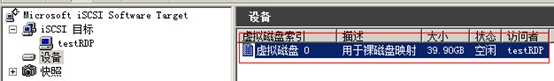 在iSCSI目標(biāo)欄出現(xiàn)testRDP目標(biāo)