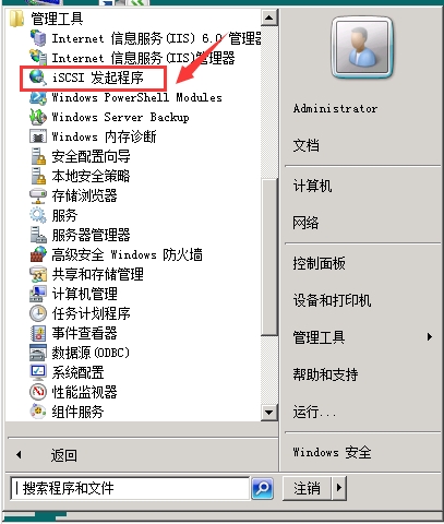 在開(kāi)始>管理工具中,找到"ISCSI發(fā)起程序",如下圖:
